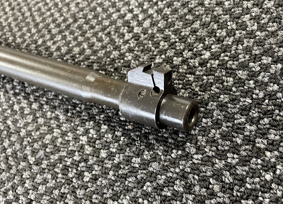 Used excellent condition Lithgow Manufactured 7.62NATO barrel to suit No4 rifle with foresight base.